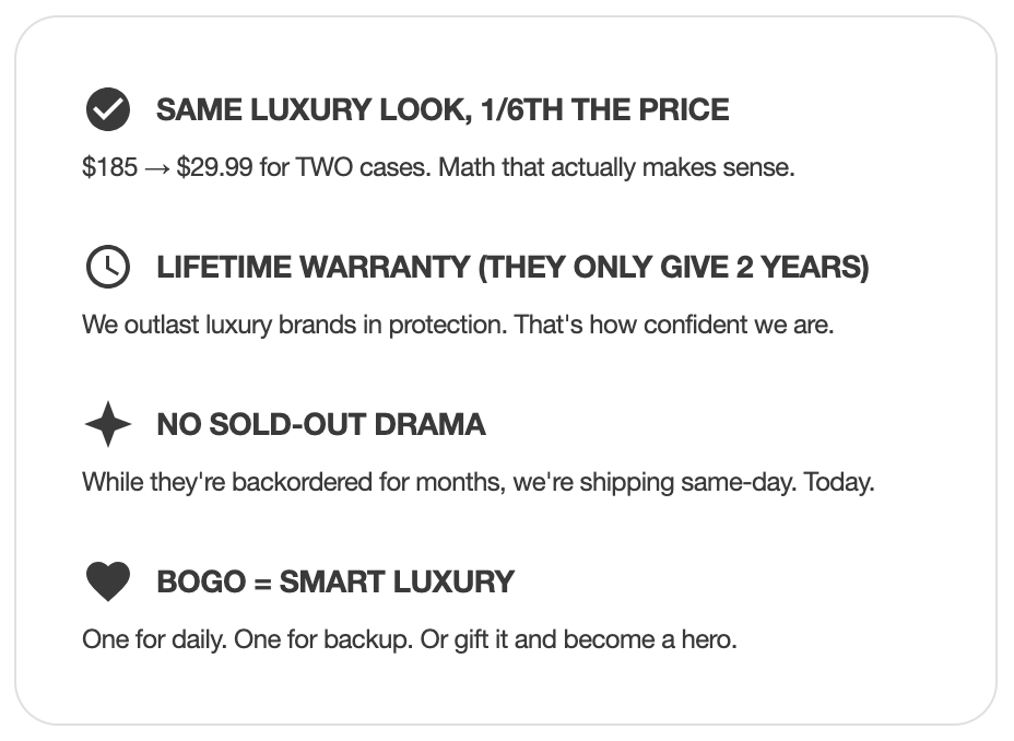 Fun fact: The $185 version also has lifetime warranty. So do we. Same protection. Same promise. $155 less. We just don't make you pay for the brand name.